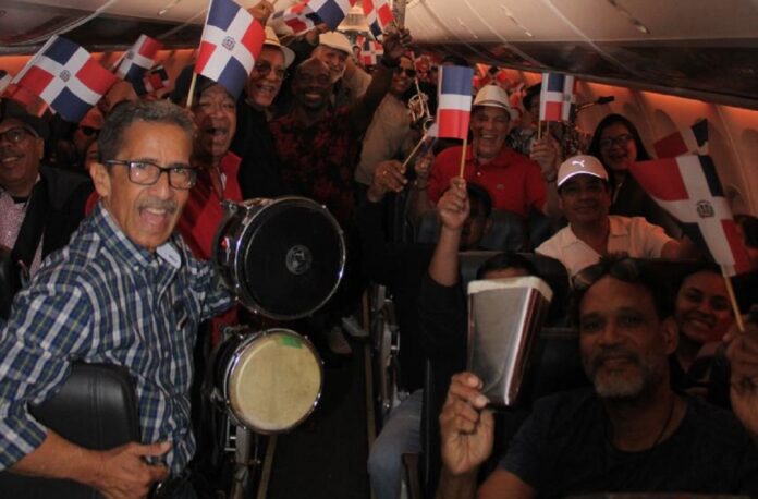 La actividad contó con la participación del emblemático grupo Bonyé, reconocido por sus presentaciones en la Ciudad Colonial de Santo Domingo y por su aporte a la preservación y difusión del merengue y otros ritmos caribeños. Con una trayectoria que los ha convertido en referentes de la música en vivo para locales y turistas, Bonyé llevó su energía característica a bordo, interpretando merengues tradicionales mientras pasajeros ondeaban banderas dominicanas a más de 30 mil pies de altura.
