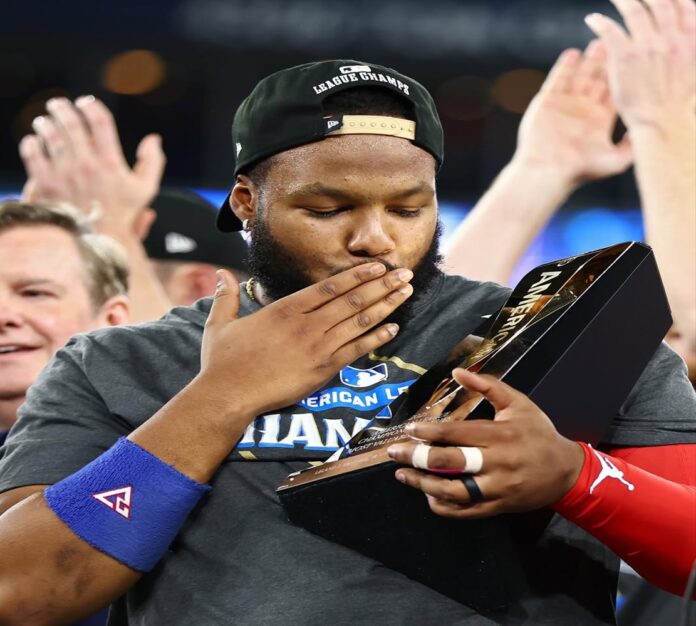“El trabajo no está terminado. Nos quedan cuatro más”, dijo Guerrero, el MVP de la Serie de Campeonato de la Liga Americana.