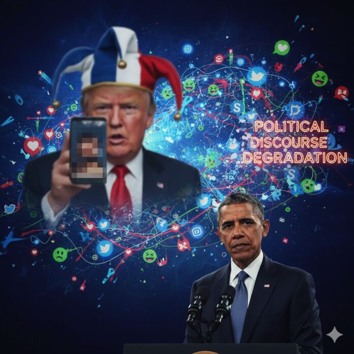 Washington (EFE).– El expresidente de EE.UU., Barack Obama, criticó la degradación del discurso político en el país y el «show bufonesco» en redes sociales, días después de que el mandatario Donald Trump publicara y luego borrara un video donde Obama y la ex primera dama Michelle aparecen representados como simios.
