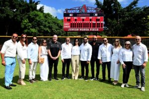 “Gracias señor presidente por acompañarnos por estar aquí presente porque con su liderazgo y visión la industria del béisbol está como nunca y se han inaugurado más academias como en ninguna otra época”, apuntó.