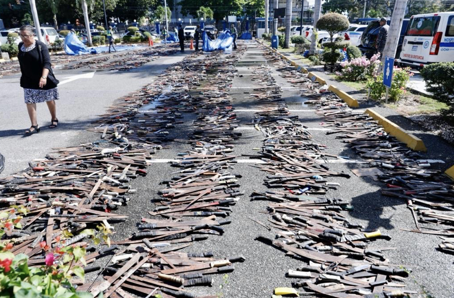 La Policía Nacional presentó este lunes al presidente de la República, Luis Abinader, un total de 30 mil armas cortopunzantes que han sido ocupadas durante los pasados seis meses mediante operativos conjuntos.