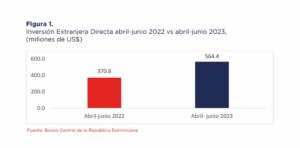 Agrega que según los informes del Banco Central el monto de IED acumulado en el primer semestre equivale a un 74.91 % del total recibido en el año 2022, mientras que casi duplica el monto de inversión en el 2021, equivalente a US$ 278.2millones.