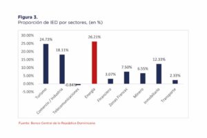 En ese mismo tenor, se informó, que el sector energía se colocó en el primer semestre como el principal receptor de IED, obteniendo el 26.21 % del total de inversiones que ingresó al país. Cabe destacar, que la participación del sector energía fue mayor que turismo (24.73 %), comercio (18.11 %) e inmobiliario (12.33 %).
