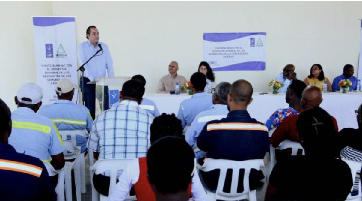 El acto de firma se llevó a cabo en el Salón Multiuso de la Comunidad Cayacoa. La mesa principal estuvo encabezada por Héctor León, Director de Recursos Humanos de CAEI, Josefina Dieguez, Directora de Sostenibilidad, Benigno, Trueba, Vicepresidente Ejecutivo, Joseph Cherubin, Presidente de MOSCTHA, así como, Loddys Abreu, Encargada de Planificación de MOSCTHA y Antonio Custodio, Gerente del Programa de Salud de CAEI.