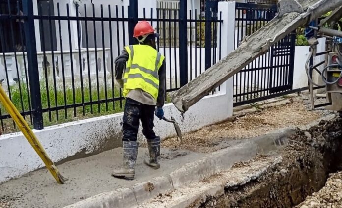 Santo Domingo.– La Corporación del Acueducto y Alcantarillado de Santo Domingo (CAASD) informó que continúa avanzando con paso firme en la construcción de aceras y contenes en el tramo A de la cañada Guajimía, específicamente en el residencial El Valle, donde ya se realiza el vaciado de hormigón como parte del proceso de urbanización y ordenamiento del entorno.