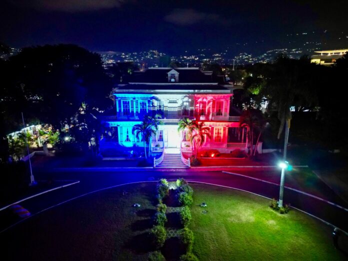 Kingston, Jamaica – Por cuarto año consecutivo, en la fecha más emblemática para el pueblo dominicano, el icónico y majestuoso Devon House se ilumina con los colores de nuestra bandera en conmemoración del 181 aniversario de la Independencia Nacional de la República Dominicana, destacando el orgullo, la historia y la identidad que nos define como nación.