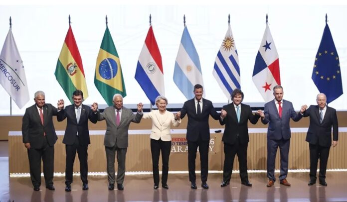 Asunción (EFE).- La crisis de Venezuela, que escribe un nuevo capítulo tras la captura hace dos semanas de Nicolás Maduro y su esposa, Cilia Flores, se coló el sábado en la firma del pacto de libre comercio entre la Unión Europea (UE) y el Mercosur en Asunción, la capital de Paraguay, donde se hicieron votos por el retorno de la democracia al país caribeño.