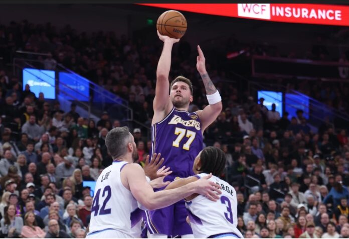 SALT LAKE CITY (AP) — Luka Doncic logró 45 puntos, 14 asistencias y 11 rebotes para acreditarse su quinto triple-doble de la temporada, y los Lakers de Los Ángeles se valieron de un gran último periodo para derrotar el jueves 143-135 al Jazz de Utah.