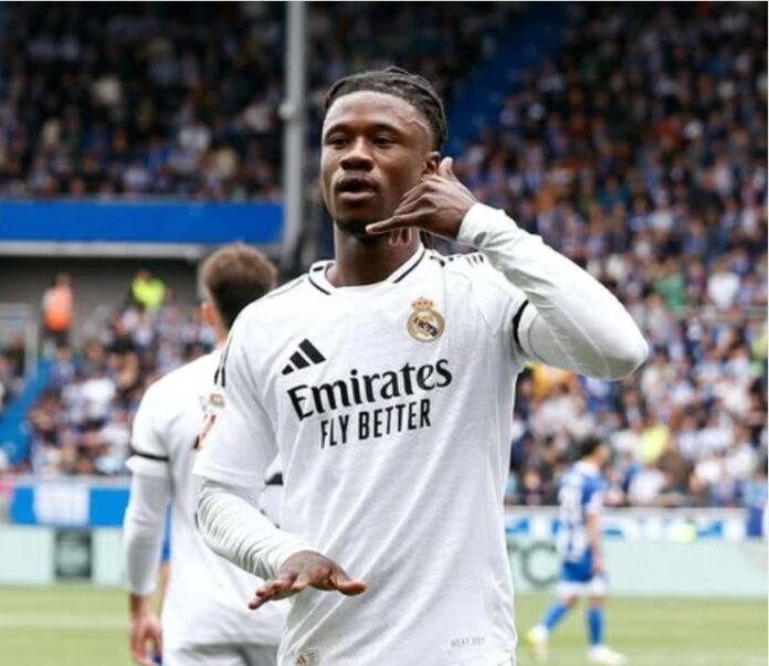 Eduardo Camavinga anotó el gol de la victoria del Madrid con un disparo desde fuera del área al 34.
