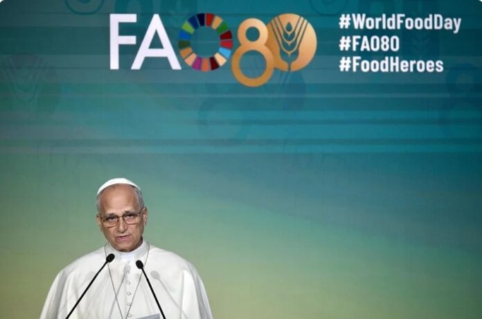 Roma (EFE).- El papa León XIV ha denunciado el «uso de los alimentos como arma de guerra» y la carestía en lugares como Gaza o Ucrania, durante su intervención este jueves en los actos del Día Mundial de la Alimentación en la sede romana de la Organización de Naciones Unidas para la Alimentación y la Agricultura (FAO).
