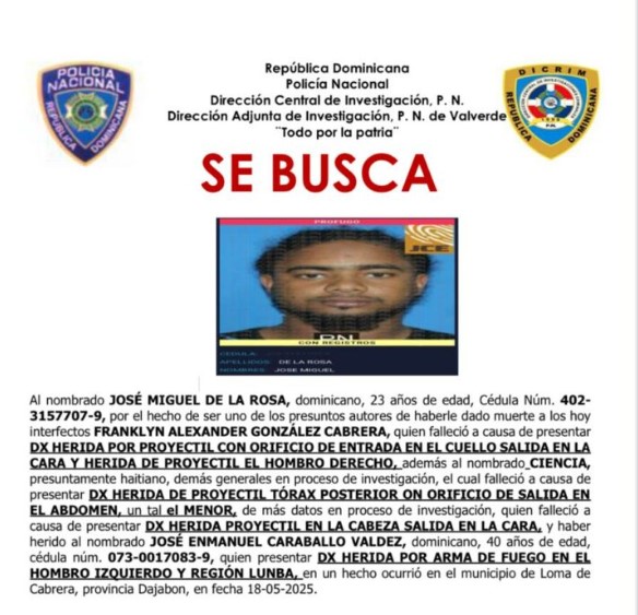 Los autores de este múltiple crimen fueron identificados como José Miguel de la Rosa, de 23 años, con antecedentes penales y orden de arresto pendiente; Héctor Alejandro Acevedo Estévez (a) “Chico”, residente en el sector Pinal Claro, también prófugo; y un tercero apodado “Fenbo”, cuya identidad completa continúa bajo verificación.