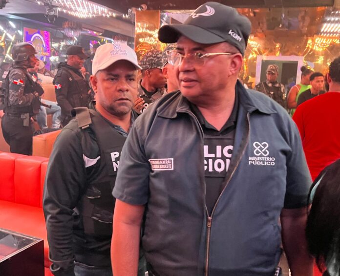 El coronel Miguel Mata Rodríguez lideró el contingente que de la Policía Nacional que acompañó a los miembros del Ministerio Público, en el que también participaron agentes del Departamento Anti-ruido de la Policía Nacional, que encabeza el teniente coronel Juan González Farias, además de la Dirección Nacional de Control de Drogas (DNCD) y del Control de Bebidas Alcohólicas (COBA).