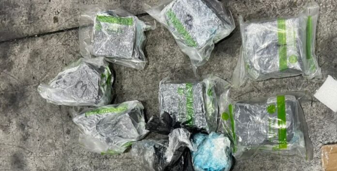 Por instrucciones del fiscal, se inició el proceso de apertura, localizando en tres cajas, un total de ocho paquetes presumiblemente cocaína, forrados en fundas plásticas, con un peso superior a los cinco (05) kilogramos.