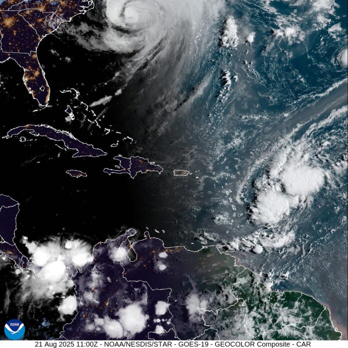 En cuanto a las condiciones marítimas, el Indomet confirmó que el huracán Erin ya no afecta a la República Dominicana, por lo que el oleaje ha retornado a la normalidad en las costas nacionales.