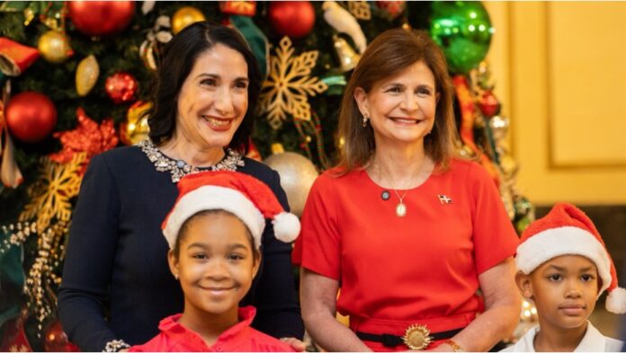 La primera dama Raquel Arbaje, acompañada de la vicepresidenta Raquel Peña, compartió un mensaje centrado en la importancia de la unión familiar y la esperanza que inspira esta época. Ambas encabezaron el momento más esperado del evento: el encendido del árbol y las luces de los jardines que indicaron el inicio oficial de la temporada navideña en la sede del Gobierno.