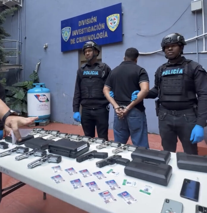 RD.-Agentes del Departamento Operativo II de Investigaciones de Delitos Contra la Propiedad (Robos) de la Policía Nacional apresaron a un hombre durante un importante operativo, al ser sorprendido a bordo de un vehículo con 21 armas de fuego traumáticas, las cuales, por sus características técnicas, se prestan para ser modificadas y permitir el disparo de municiones calibre .380, con el potencial de convertirse en armas letales.
