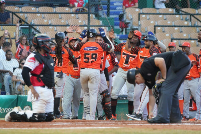 De su lado, los escarlatas lograron tres rayitas, una en la tercera entrada con jonrón solitario al jardín derecho del jardinero Héctor Rodriguez y tres en el noveno con hits empujadores de Alexander Canario y Jonathan Guzmán para acercarse 12-4.