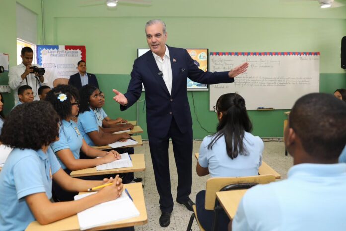 Santo Domingo.– El presidente de la República, Luis Abinader, fungió este martes como docente al impartir una clase de Moral, Cívica y Ética Ciudadana a estudiantes de 5to grado del Liceo Germán Martínez, donde expresó que esta materia debe colocarse adelante en el sistema educativo porque permite formar mejores compañeros, mejores parejas, mejores ciudadanos y mejores dominicanos del mundo.