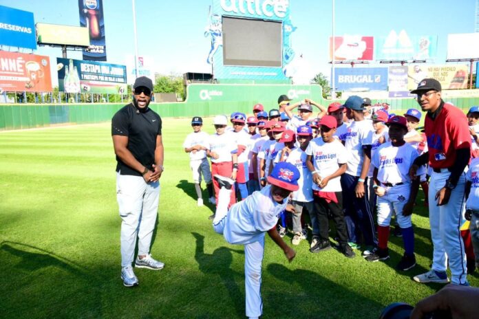 Alrededor de 300 niños participaron en la actividad, celebrada en el estadio Quisqueya Juan Marichal, donde recibieron enseñanzas técnicas y motivacionales de un destacado grupo de peloteros activos y exjugadores, en una jornada cargada de entusiasmo, aprendizaje y alegría.